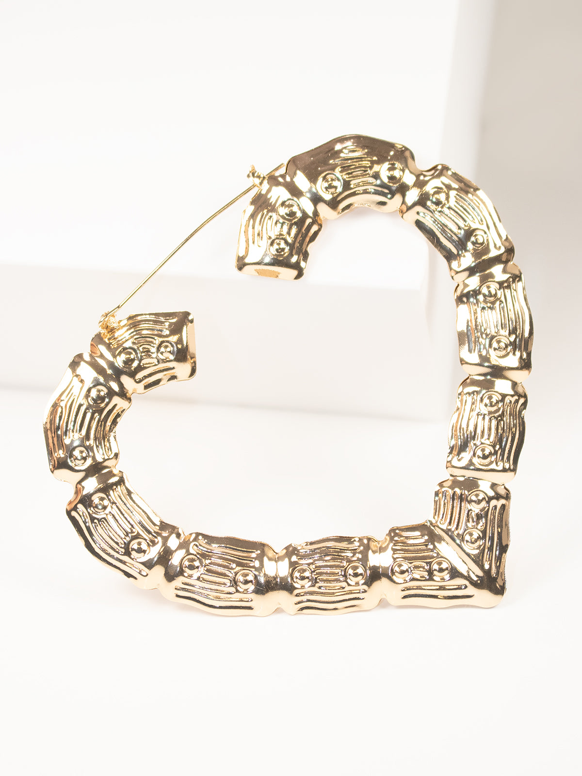 A modern statement of love, the Rich Girl heart hoop earring, complete with a metal latch closure that snaps perfectly into place.